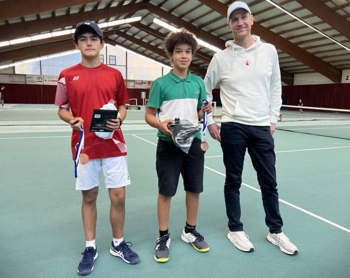 Siegerehrung bei der männlichen U16: v.l.n.r. Felix Muresan, Noah Burkhard mit TC-Sportwart Pat Friedrich